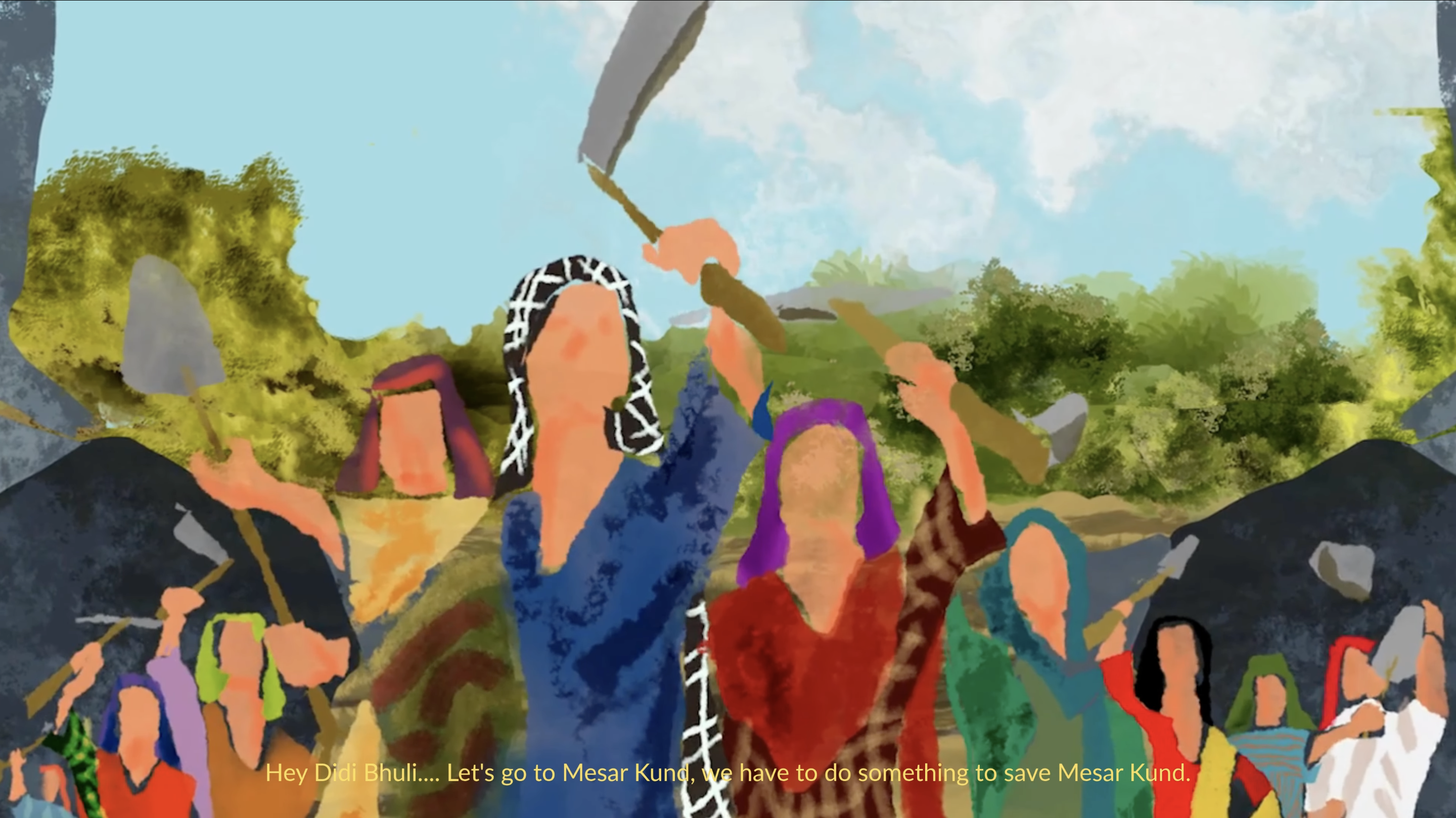 Research, Women-Led ConservationAn animated film weaving local folklore and community-led conservation into the story of a pond's restoration in Munsiari, Uttarakhand, co-created with village women, singers, and storytellers.